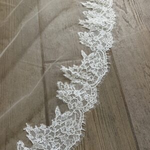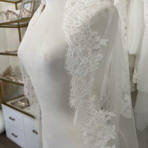 Mantilla color Ivory con bordado al rededor.
